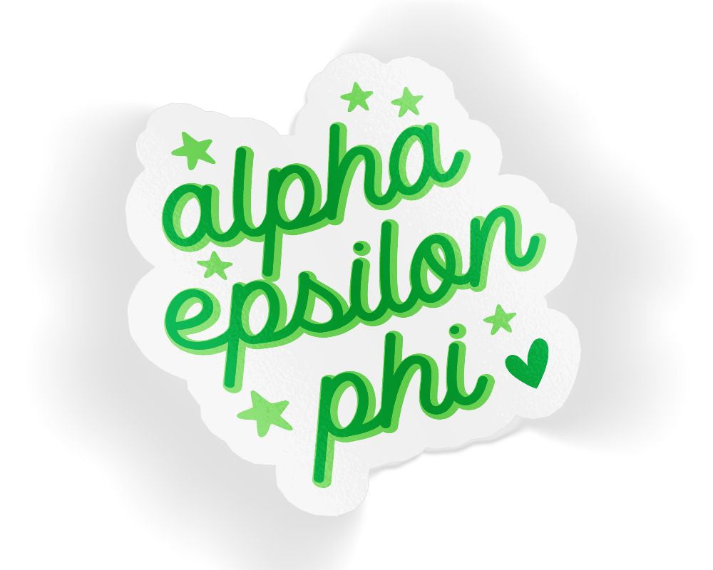 Alpha Epsilon Phi Star Sticker. Put our stickers on your cars, laptops, drinkware, phone cases and more! Approx 3.3? wide by 3.5? tall