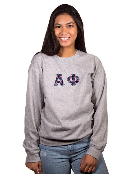 This Alpha Phi Love design is printed on our super soft and comfy Crewneck T-Shirt (5000).