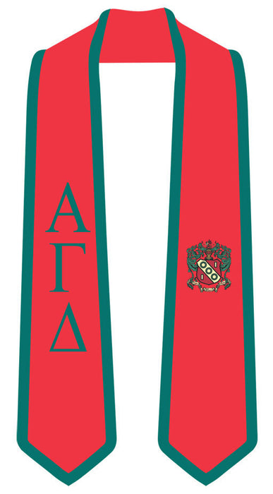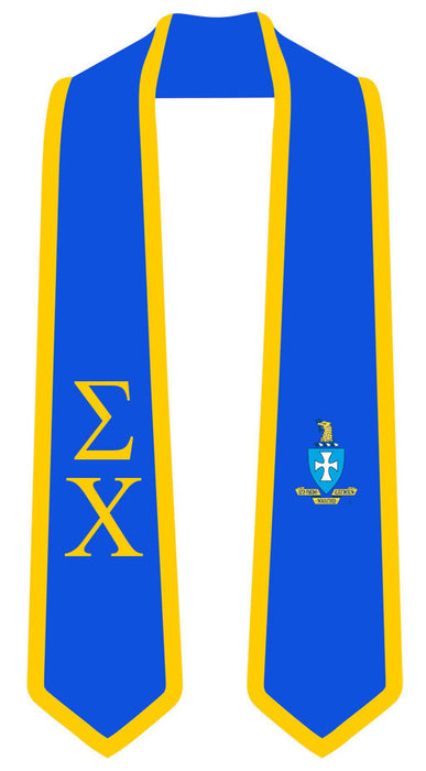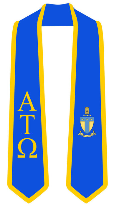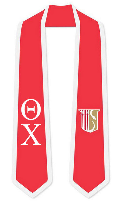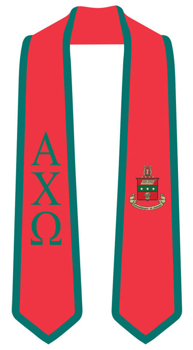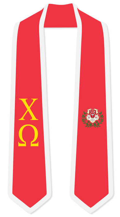 Each Chi Omega sash measures 5 inches wide by 72 inches long. One side is adorned with your Greek letters while the other features your organization's distinctive crest (full color). Choose the group as well as the stole and trim color. There are over a dozen choices. You also have a choice of letter colors. Look your best on graduation day for your family and friends!