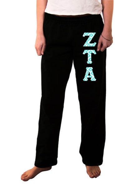 Zeta Tau Alpha Open Bottom Sweatpants with Sewn-On Letters