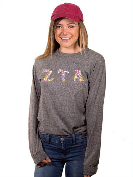 Zeta Tau Alpha Long Sleeve T-shirt with Sewn-On Letters