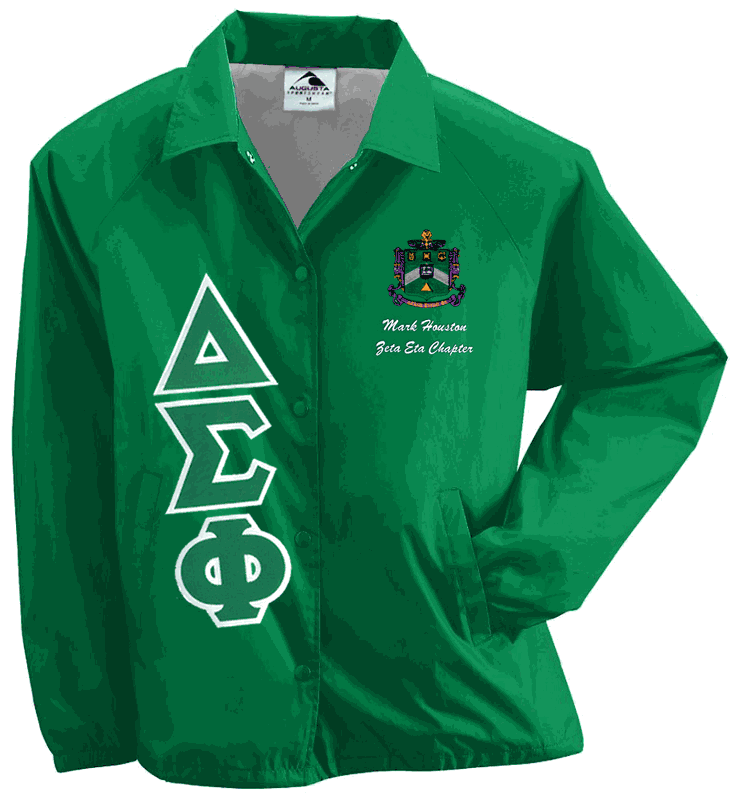 Delta Sigma Phi Lettered Jacket - comes with sewn twill letters, your crest and two lines of customization.
