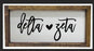 Add Sorority Spirit to your décor with our Delta Zeta Script Large Wall Art! Each wooden sign features a brushstroke script with heart detailing on canvas and bordered with a wooden frame. A great item for yourself or to give as a gift, our wooden sign makes the perfect statement piece for your dorm or Delta Zeta house!
