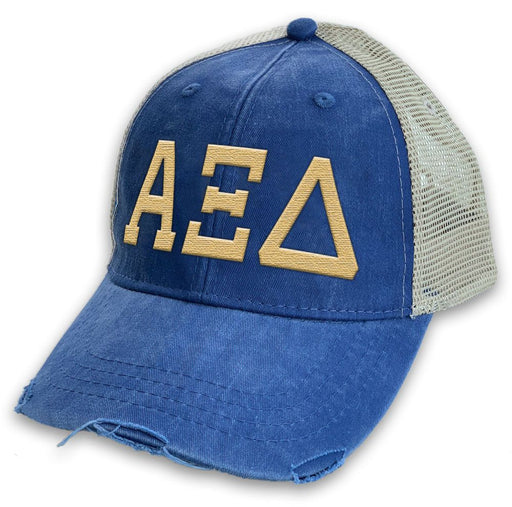 Shop our huge selection of embroidered and monogram alpha xi delta hats. You can customize baseball and trucker hats with your greek letters. The caps our all high quality and custom made to order. You can place a custom order for headwear for your entire organization using our online design tool to preview the caps before you place an order. Each alpha xi delta hat is made from the finest materials so it will last you as long as your big little sis will keep you around. We have recently added a handful of new hat designs that you can personalize with your alpha xi delta letters and name. Each hat comes in a variety of colors that you can choose from. Make sure to play around with the design tool to make sure you customize the hat to your liking. Once you are happy with the design, you can order it online.