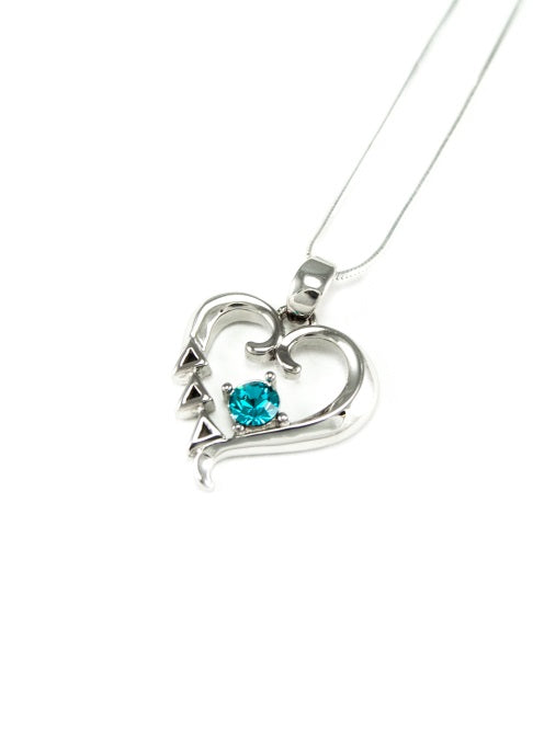 Delta Delta Delta Sterling Silver Heart Pendant with Colored Swarovski Crystal