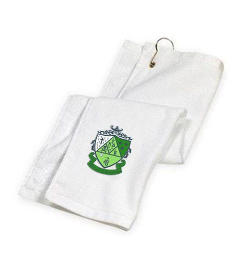 Kappa Delta Golf Towel. The luxurious feel and performance of terry velour to clean clubs and keep your hands dry on the course. 100% cotton terry velour Hemmed and finished look with a grommet and hook Dimensions: 16" x 26", 3.5 lbs/doz
