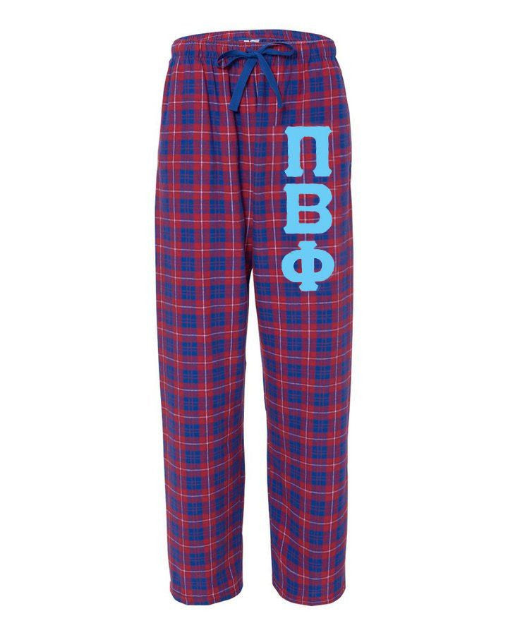 Pi Beta Phi Pajamas - Flannel Plaid 4.0 oz., 100% cotton flannel Covered elastic waistband with imprintable taping and drawcord Side-seam pockets - Unisex - geared for guys.
