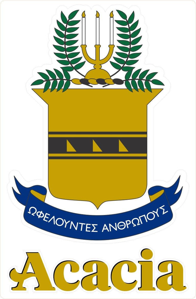 ACACIA Crest - Shield decal. They are for opaque surfaces or the outside of windows. Decal measures approx. 3" and comes with an additional decal with just your greek letters.