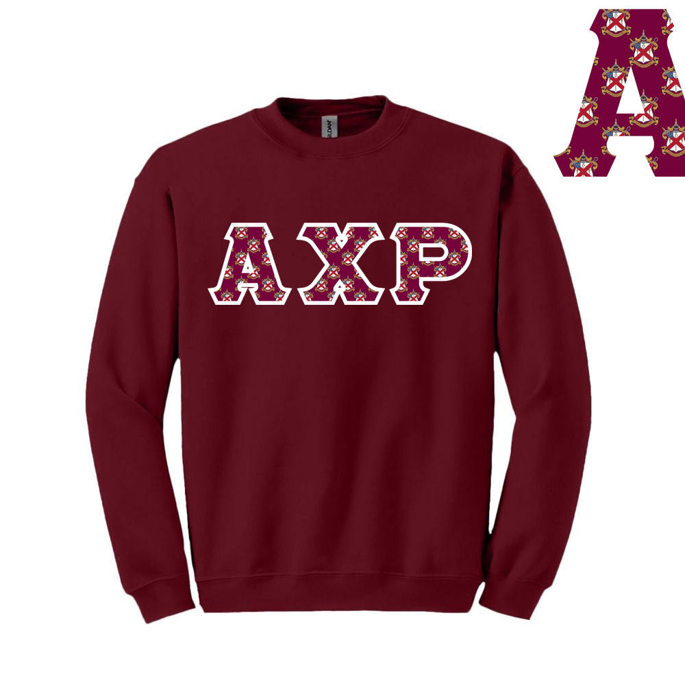 Alpha Chi Rho Fraternity Crest - Shield Twill Letter Crewneck Sweatshirt is unisex and heavyweight. Your Fraternity Crest - Shield is repeated over and over to make an awesome unique Fraternity Design.