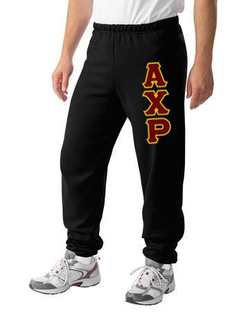 Alpha Chi Rho Lettered Sweatpants. Sewn 4" letters on the left leg! Made more for men, so order accordingly. Sizing Info: Our sweatpants are unisex sizes unless noted. Please note this is a "sim-stitch" item, meaning simulated stitching. Letters are heat applied and not sewn on the garment. They do have the same look as a sewn item!