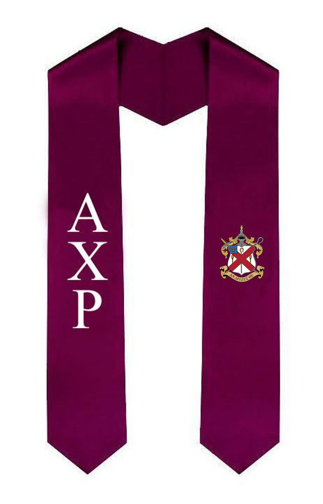 Alpha Chi Rho Greek Lettered Graduation Sash Stole. These Graduation Sashes are made of Bridal satin and measures 5" width & 72" length. They come as shown. If you want to customize your stole, please choose one of our other options. *Please Note: Due to the time sensitivity of this item, stoles cannot be cancelled or returned. These Alpha Chi Rho fraternity graduation stoles are awesome!