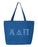 Alpha Delta Pi Greek Letter Zipper Tote made of 12.0 oz., 100% heavy cotton canvas Large main compartment with zippered closure Inside zippered flap pouch pocket 25" self-fabric handles 11" handle drop Bag Size: 20 inches W x 15 inches H x 5 inches D