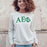 Alpha Epsilon Phi Arched Greek Lettered Crewneck Sweatshirt. Sorority Arched Greek Lettered Crewneck Sweatshirt comes printed in your choice of colors. Heavyweight crew neck perfect for a fall day.