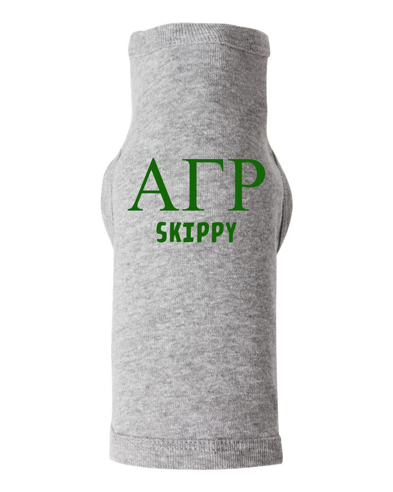 Alpha Gamma Rho Doggie Tank - Tee. 5.0 oz., 100% combed ringspun cotton 1x1 baby rib. Sizing: S (0-4 lbs), M (5-10 lbs), L (11-23 lbs), XL (24-45 lbs), 2XL (46-70 lbs), 3XL (71+ lbs)