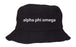 Alpha Phi Omega Bucket Hat IS Fun, fashionable and affordable. The hats have a traditional bucket shape with a floppy brim and large crown that provides plenty of sun protection while you're cruising campus or attending a Greek event.