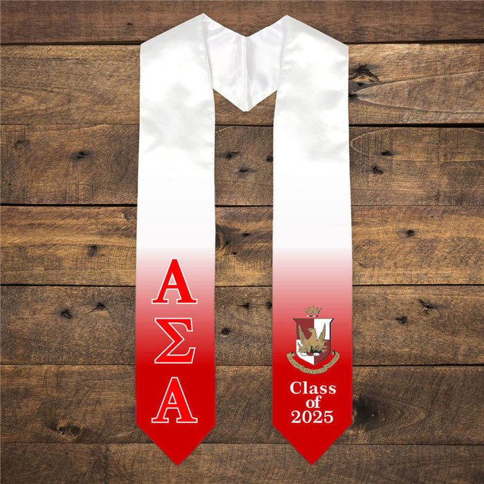 Alpha Sigma Alpha These Graduation Sashes are made of Bridal satin and measures 5" width & 72" length. *Please Note: Due to the time sensitivity of this item, stoles cannot be cancelled or returned.