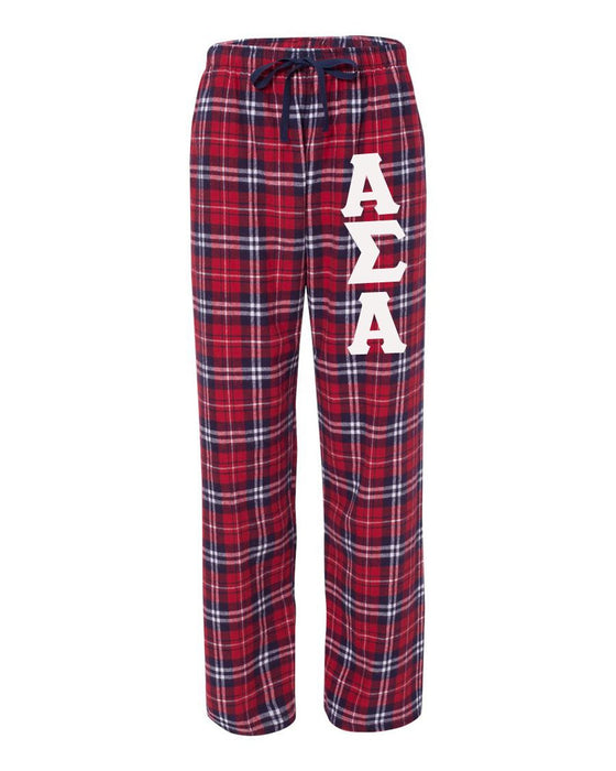 Alpha Sigma Alpha Pajamas - Flannel Plaid 4.0 oz., 100% cotton flannel Covered elastic waistband with imprintable taping and drawcord Side-seam pockets - Unisex - geared for guys.