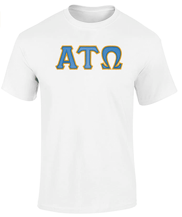 Alpha Tau Omega - Twill Greek lettered T-Shirt is rush produced and ships within 2 business days (shipping time not included). A great value on a great 6.1 oz heavyweight tee.