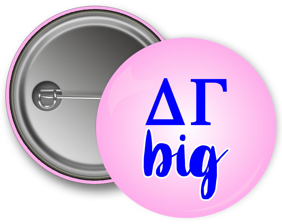 Delta Gamma Big Button. Standard size 2.25" round pin back style button.