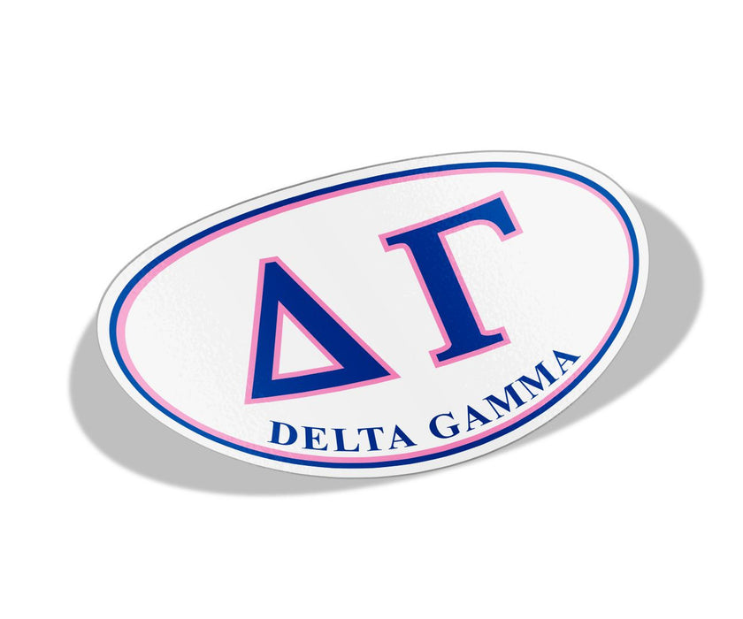 Delta Gamma Greek Letter Oval Decal measures 4" x 6" and is great to decorate those things that need a little splash of color.