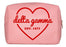 Delta Gamma Pink with Red Heart Makeup Bag. With a zipper enclosure to keep all your items secure, and lined in a silky pink fabric with inside pockets for organizing, our bag is a functional, giftable and trendy addition to your sorority swag! Measures 7.5 x 6 x 3.5