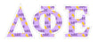 Delta Phi Epsilon Beautiful Mascot print sorority greek letters. Stickers measure approximately 2.5" tall and are perfect for autos, laptops, water bottles, coolers, boats, doors, etc. Sizing example: 3 letter groups ordering a 2
