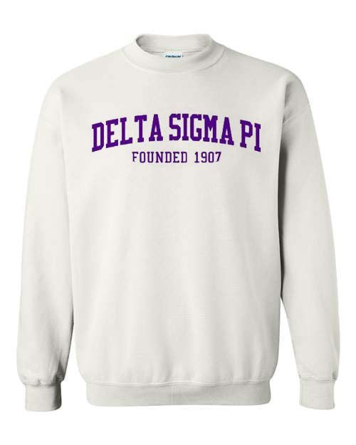 Delta Sigma Pi Fraternity Founders Crew Sweatshirt is 8 oz with Air jet yarn for softer feel and reduced pilling Double-needle stitching at shoulders, armholes, neck, waistband and cuffs 1x1 rib with spandex for enhanced stretch and recovery. Unisex sizing with raglan sleeves and 1x1 ribbed cuffs and waistband.