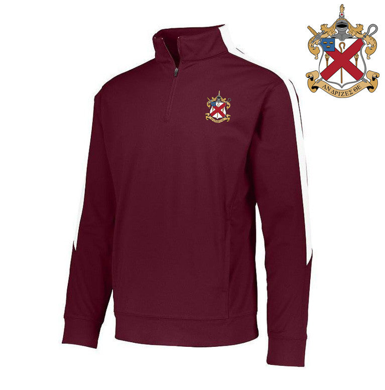 Alpha Chi Rho- $39.99 World Famous Greek Crest - Shield Medalist Pullover is a lightweght quarter zip pullover with Full Color Greek patch.