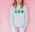 Some days you want to dress to the nines. Other days you just want to throw something on fast and dash out the door. That's when this Discount Alpha Epsilon Phi Lettered Long Sleeve Tee comes in handy. Is the perfect pull it on and go shirt AND makes representing your sorority on a regular basis on campus a breeze. The white tee with green twill lettering is just 20 bucks. Pay a couple more dollars if you desire another color, like forest green, kelly green or lime green. These also make ideal new member gifts -- for an additional charge you can add an AEPhi sorority crest to the sleeve as well. Please note this is a "sim-stitch" item, meaning simulated stitching. Letters are heat applied and not sewn on the garment. They do have the same look as a sewn item!