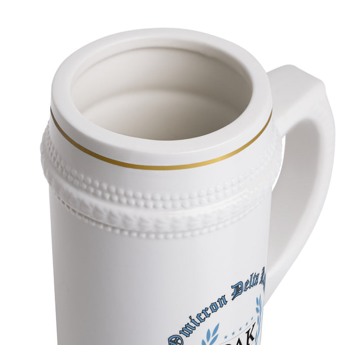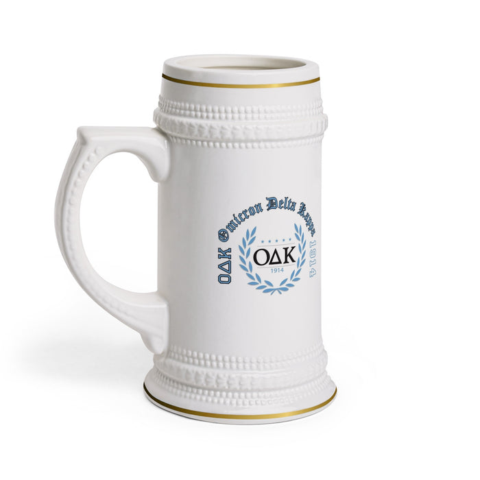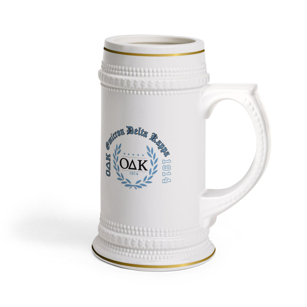 Omicron Delta Kappa Collectors Crest & Year Stein Tankard. These 22oz white stein mugs are made from 100% ceramic. The mugs are treated with an ORCA coating that makes sure your original designs are printed in vibrant colors and high resolution.